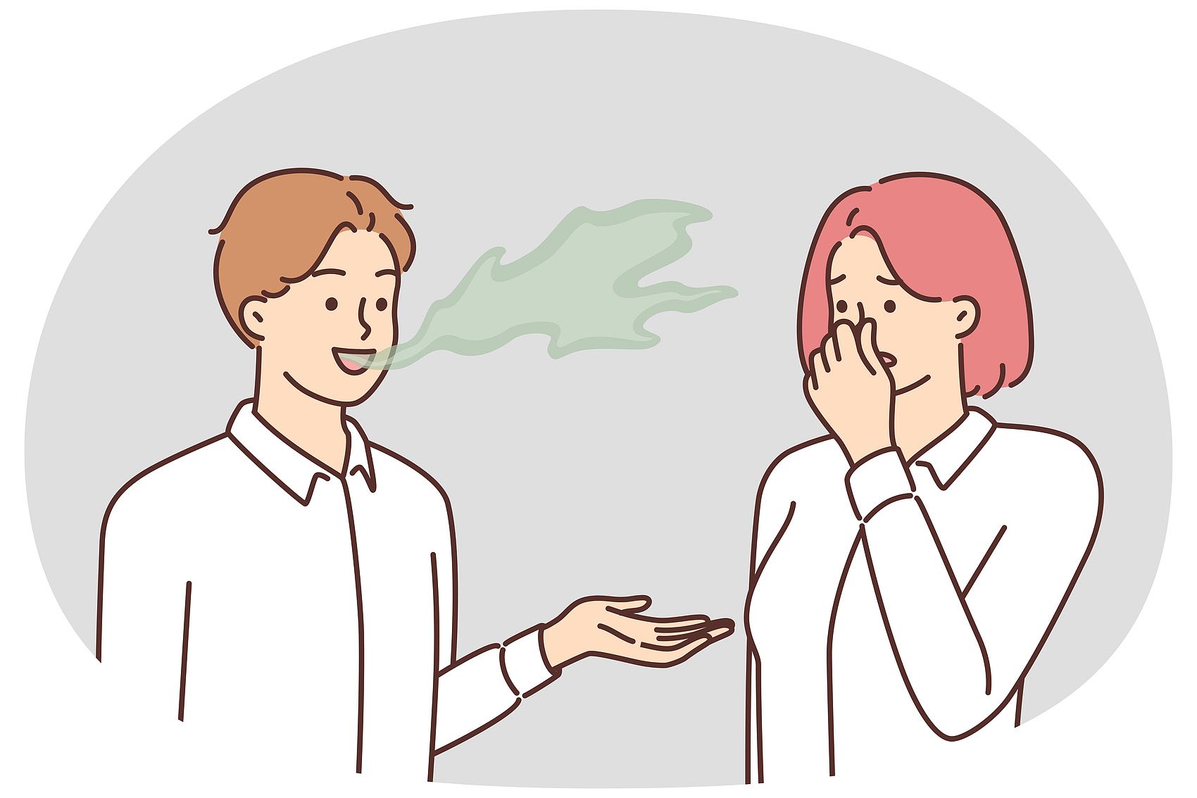 病理性口臭包括口源性口臭和非口源性口臭两种,其中口源性口臭占80%~90%,由牙龈炎、牙周炎、口腔黏膜疾病等引起的口臭都属于口源性口臭;而非口源性口臭,顾名思义就是由除口腔以外的问题引起的口臭,如胃酸反流、肠炎相关疾病、鼻炎、鼻窦炎和药物等。